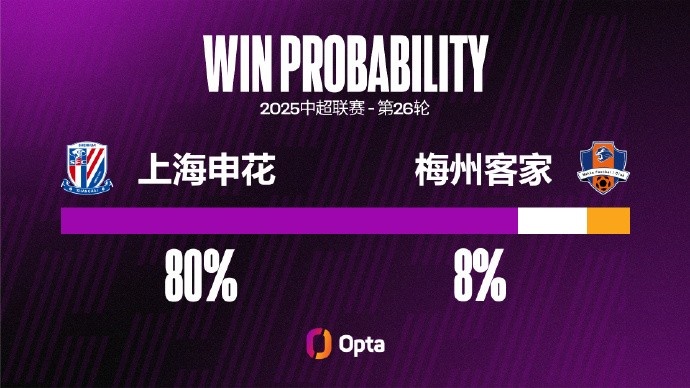 申花在中超7次对阵梅州客家都获胜 是对单一对手并列最长连胜记录
