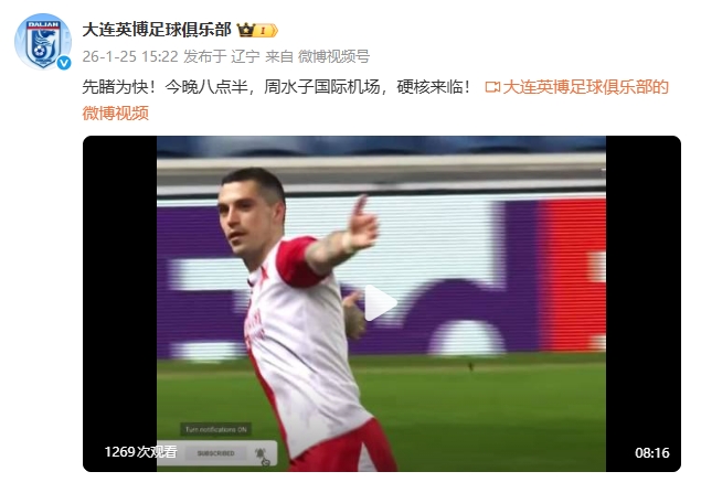 01月25日讯 大连英博官博发布斯坦丘集锦——“先睹为快!今晚八点半,周水子国际机场,硬核来临!”