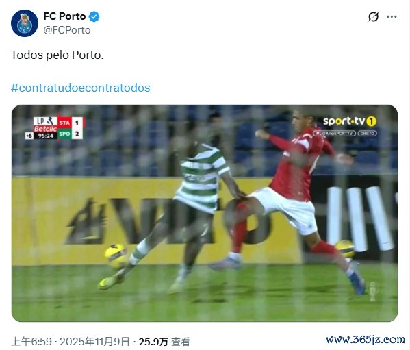 波尔图官方也晒出误判视频,配文:“所有人支持波尔图。”