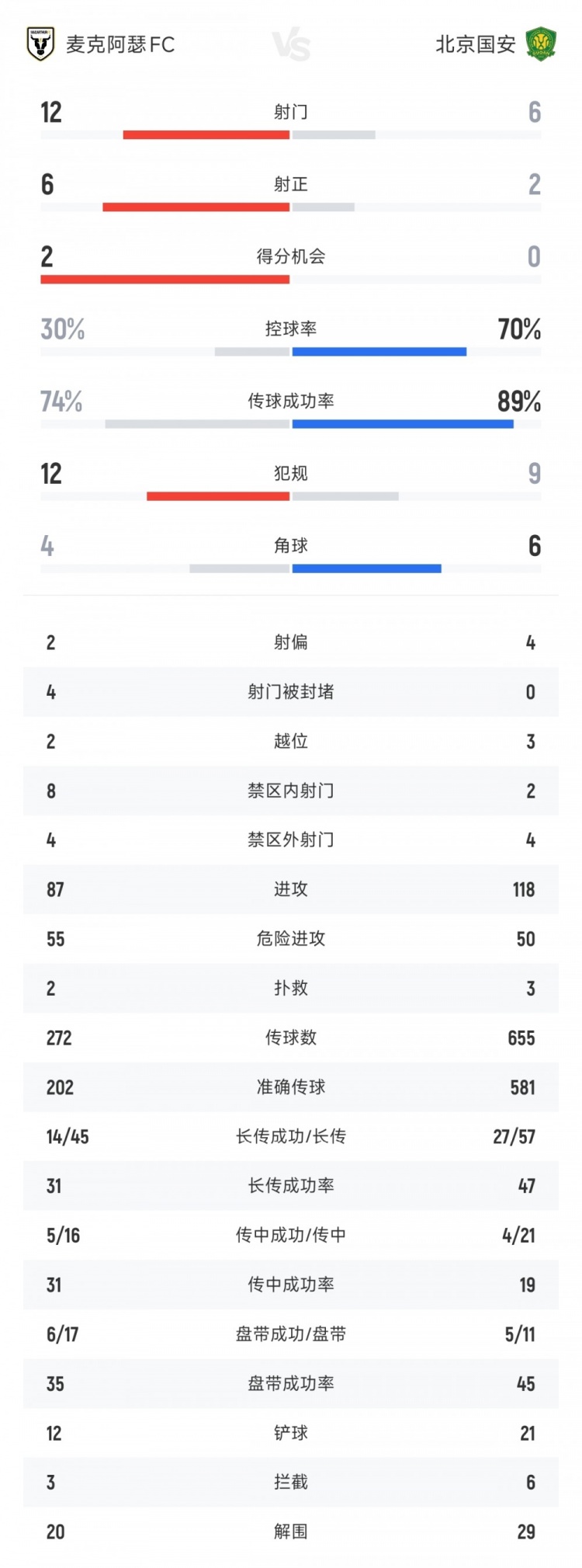 10月03日讯 亚冠二级职业联赛 小组赛E组第2轮,北京国安客场应战 0-3不敌麦克阿瑟,掉至小组垫底,麦克阿瑟升至小组第二。