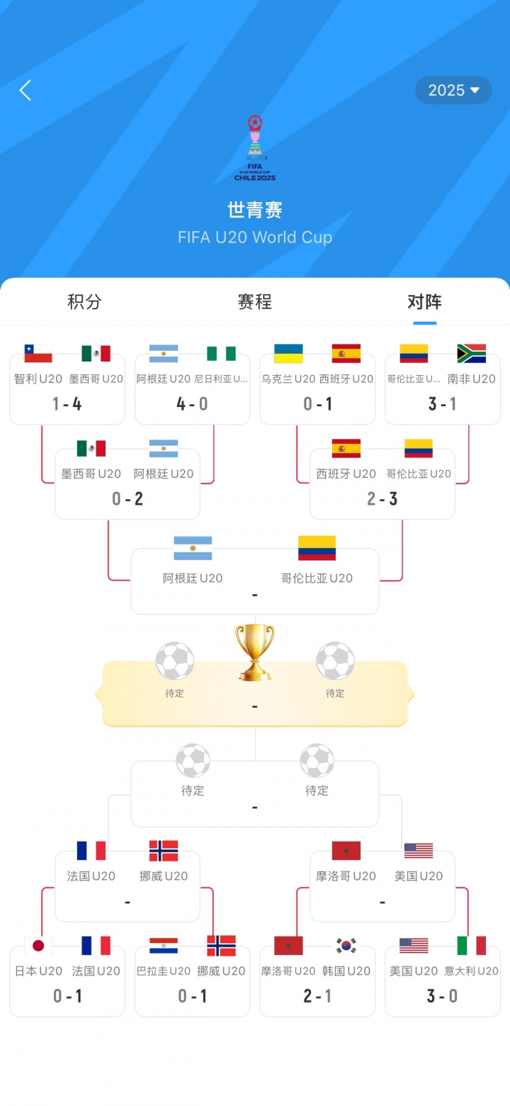 另一组准总决赛 对阵将是,法国U20vs挪威U20的胜者对阵摩洛哥U20vs美国U20的胜者。