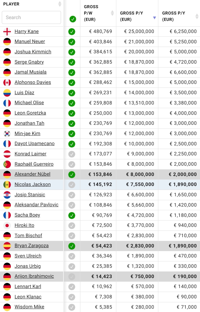 拜仁队内目前薪资最高的球员是凯恩,年薪达到2500万欧。你认为若拜仁与奥利塞续约,他应拿到什么级别的薪资?
