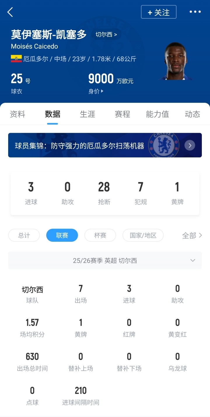 本赛季,欧洲杯直播凯塞多为切尔西出场14次表现出色,贡献3球1助功 。凯塞多本赛季在欧洲五大职业联赛 中完成的抄截 次数(18次)是所有中场球员球员中最多的。
