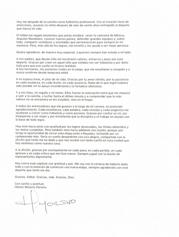 10月18日讯 前墨西哥国脚埃克托-莫雷诺更新社媒动态,宣布结束职业生涯。