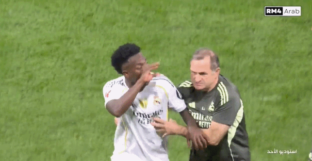 足球话题王-成功激怒自己!维尼修斯冲亚马尔做“话太多”手势,失控被拉住